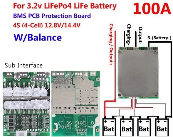 100A -12V 4Series BMS Protection Board with Balancing for LiFePO4 Battery
